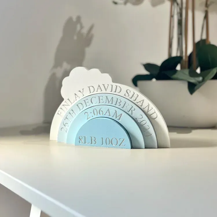 Personalized Cloud Rainbow Stacking Blocks — Creative Birth Record Keepsake