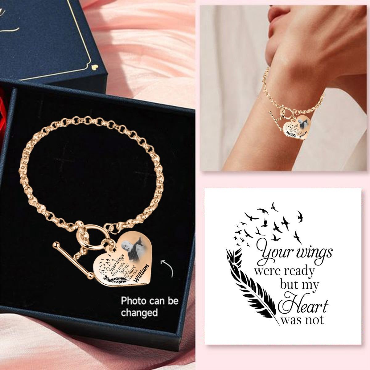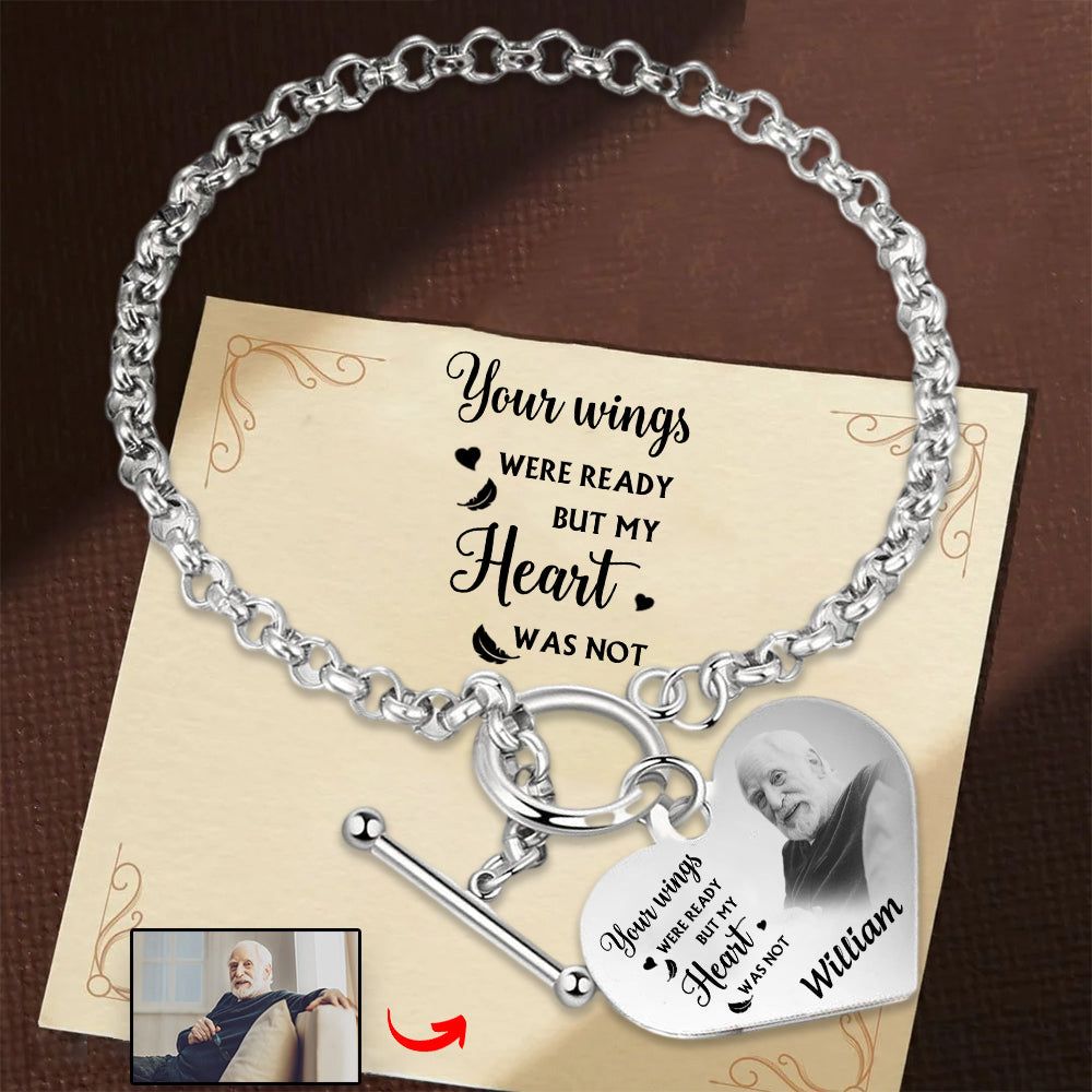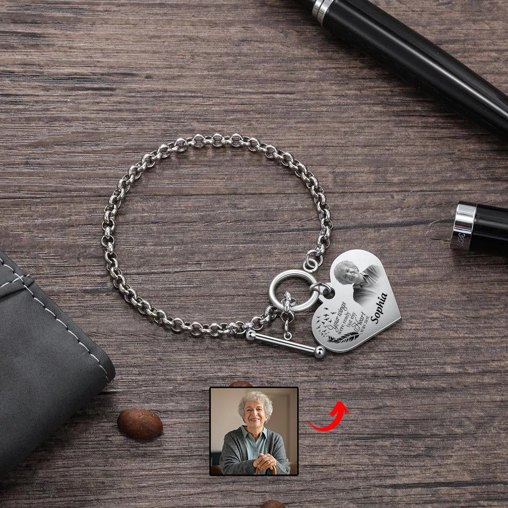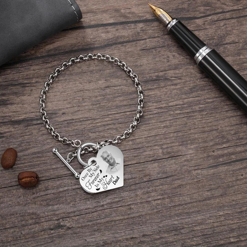 With this personalized engraved heart bracelet, you can always keep your loved one close to your heart.❤️Customize it with a photo and quote for a sentimental touch.