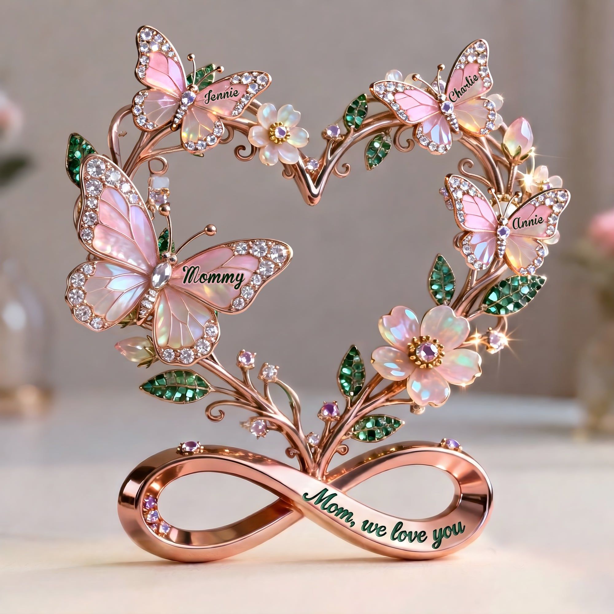 Stunning Butterflies On Mom Heart Acrylic Plaque, Personalized Gifts For Mom & Grandma