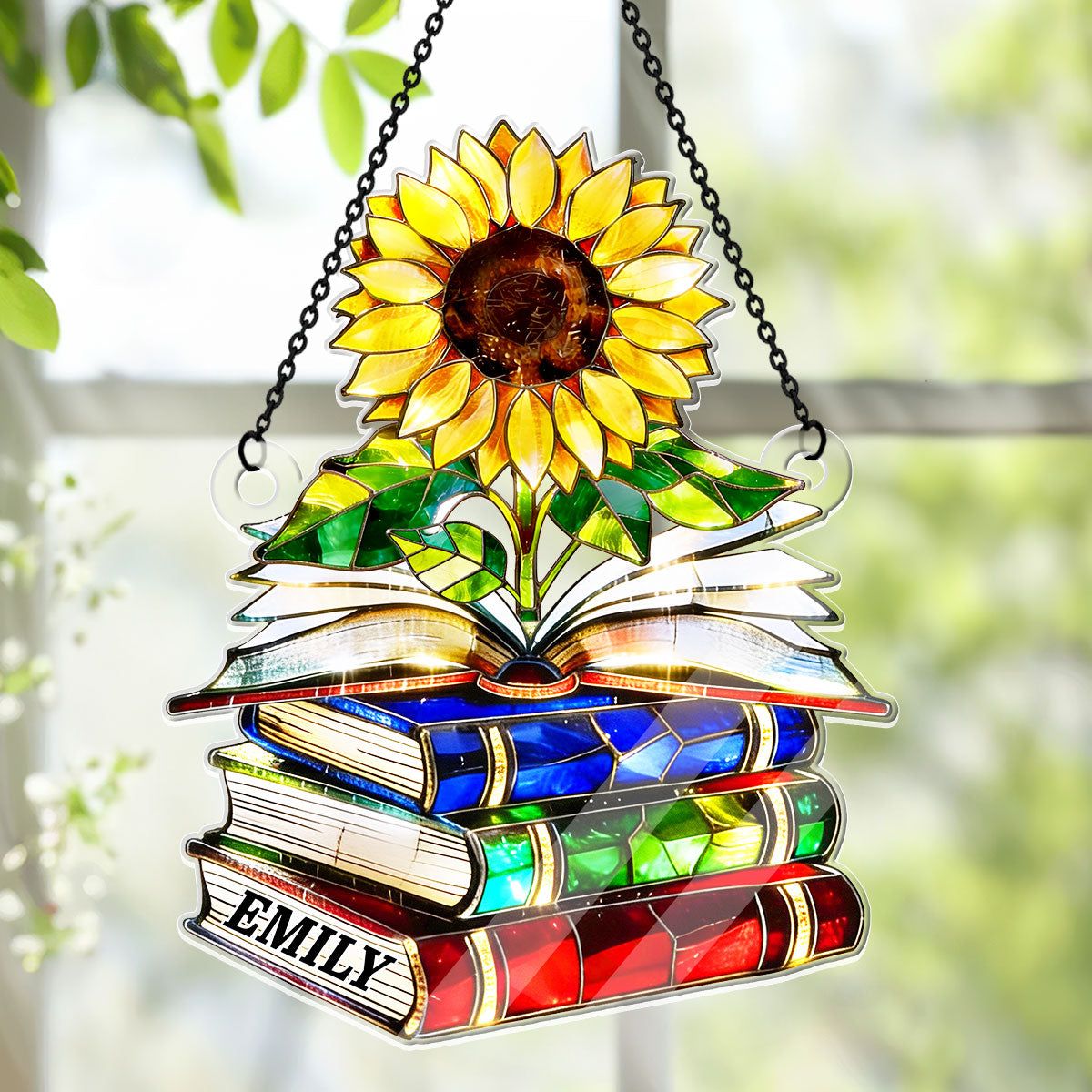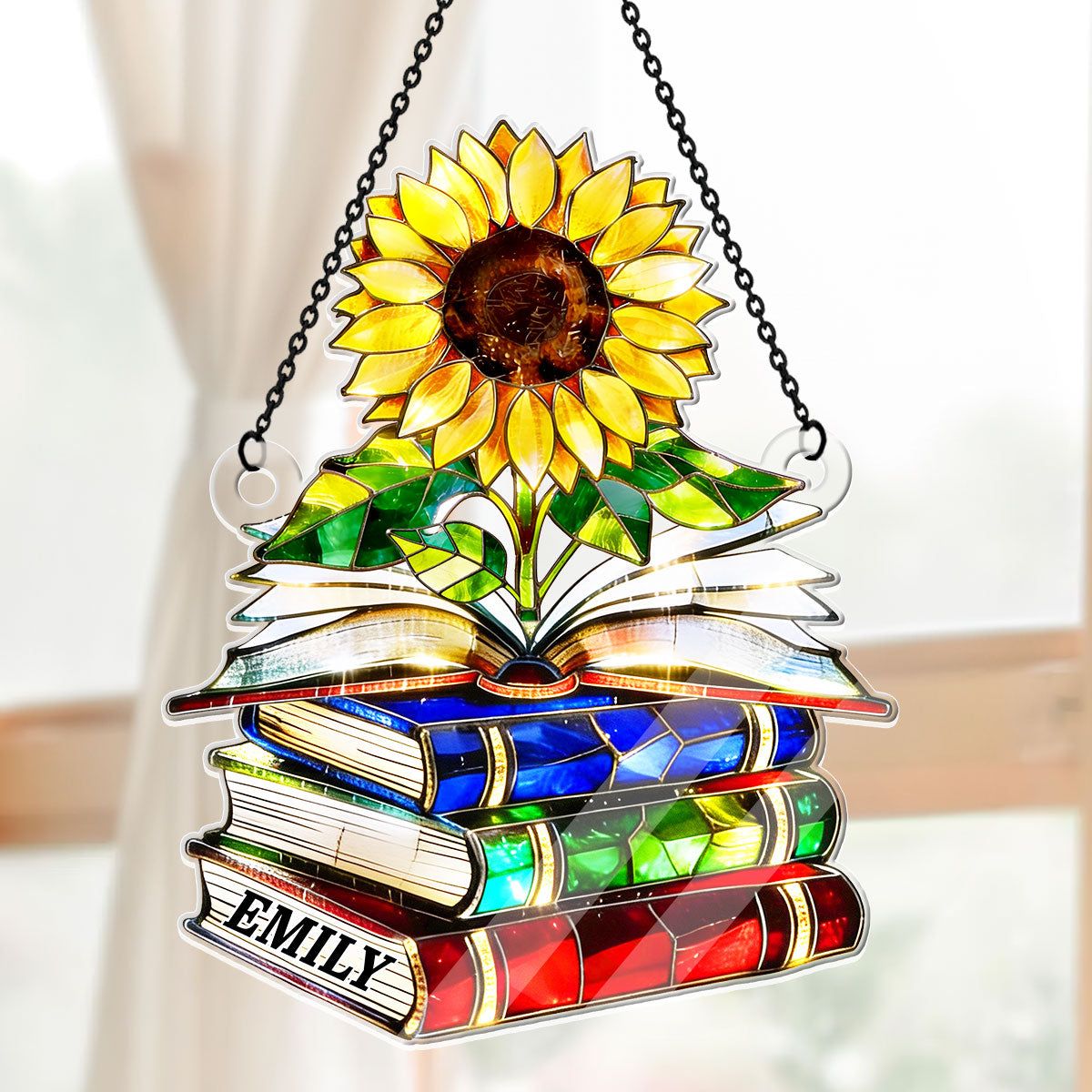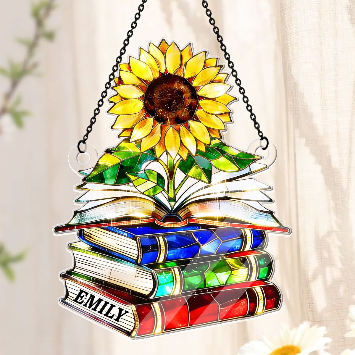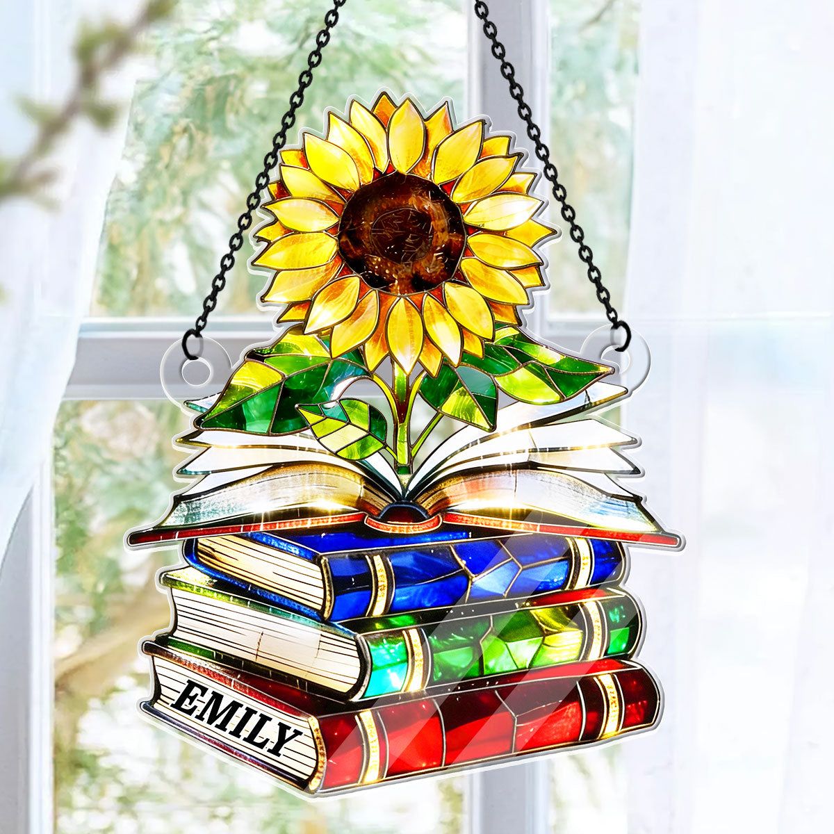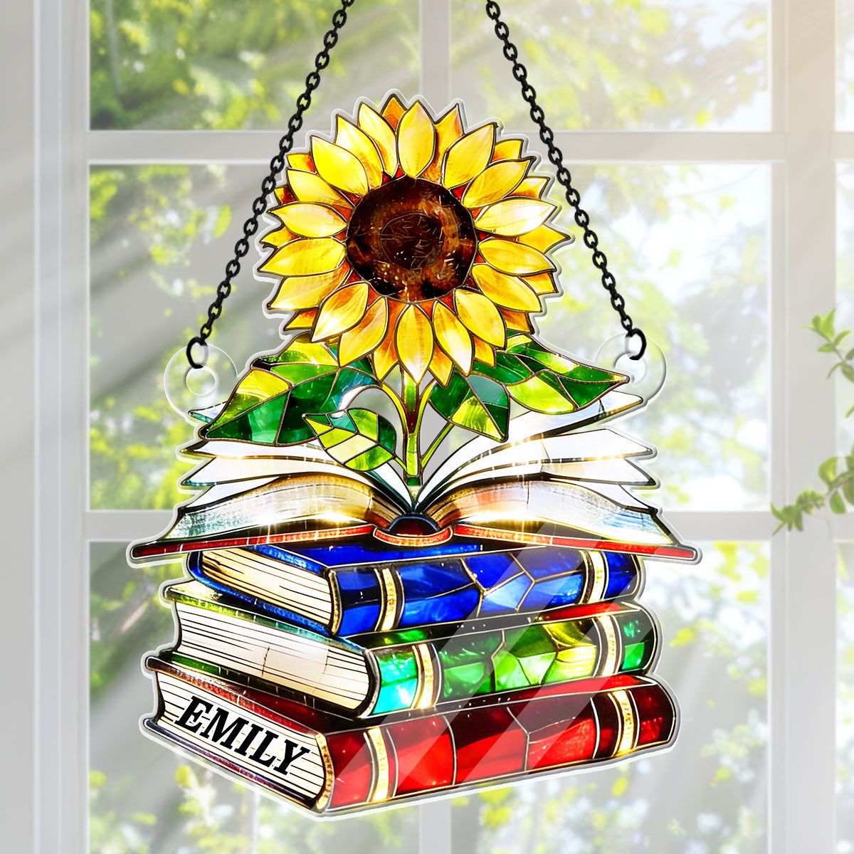 Vintage Sunflower Book Lover - Personalized Acrylic Suncatcher