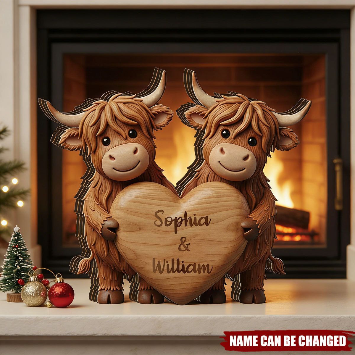 Custom Highland Cow Couple Wooden Blocks Personalized Cow Wood Plaque