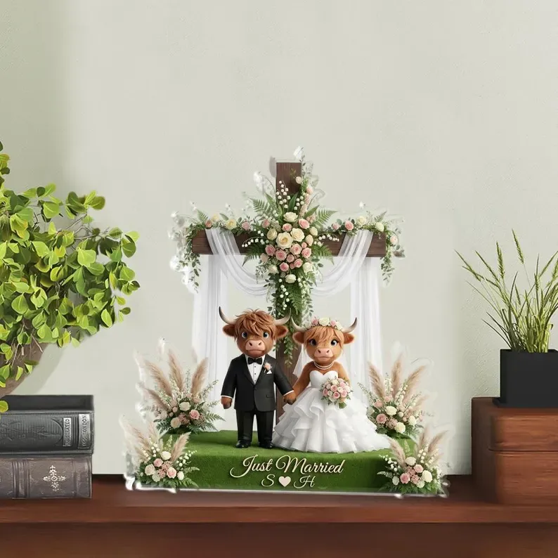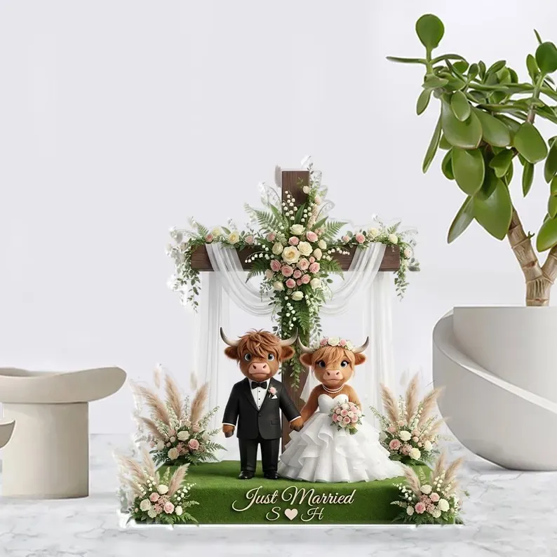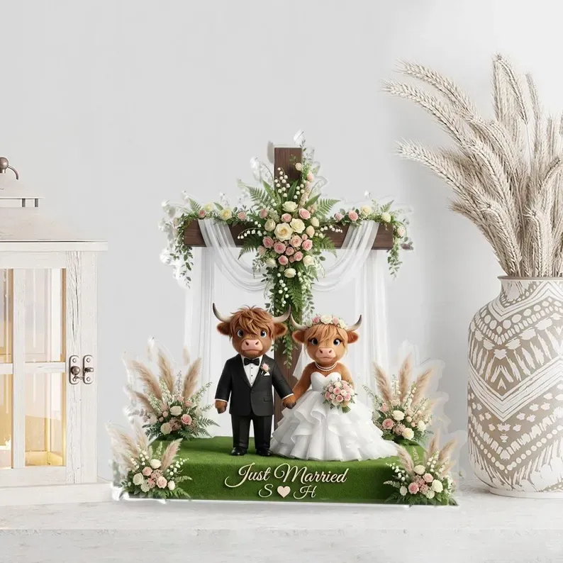 This custom Highland Cow couple acrylic plaque captures that spirit. With their shaggy coats and gentle gazes, these two stand as a symbol of a bond that's both rugged and tender, weathered and warm. Personalized with your names, it's more than rustic decor—it's a daily reminder that the deepest connections are the ones that grow stronger through every season. Place it where love gathers, and let these quiet companions bear witness to your story.