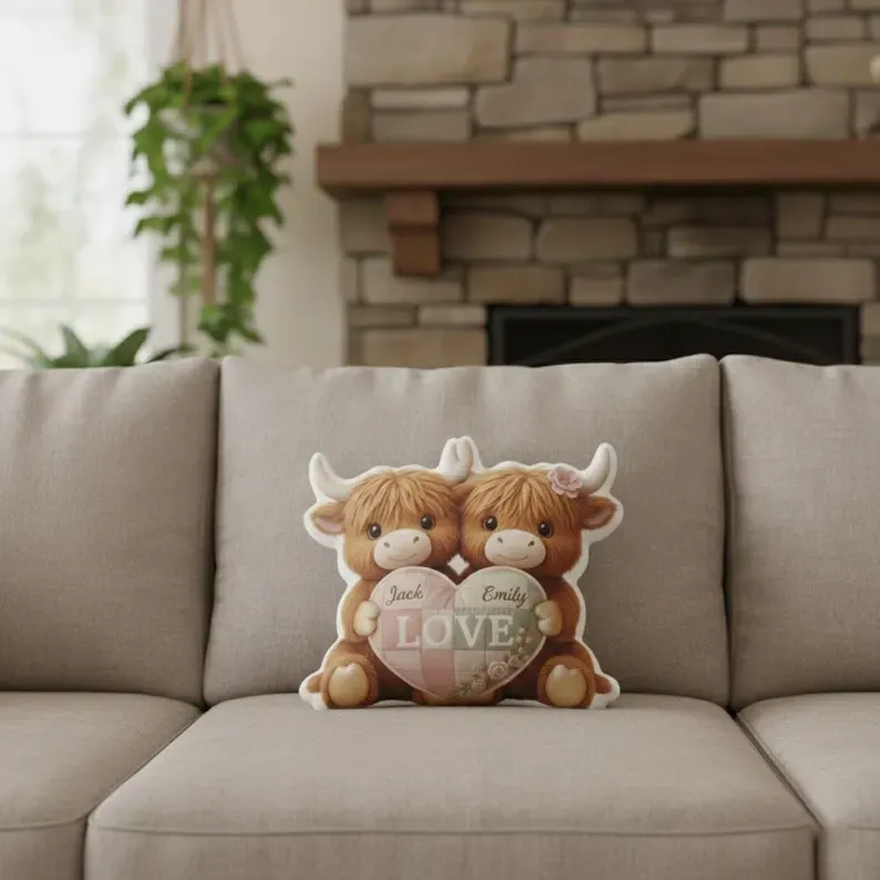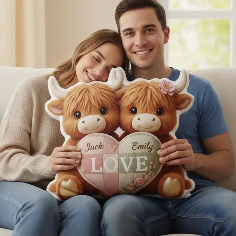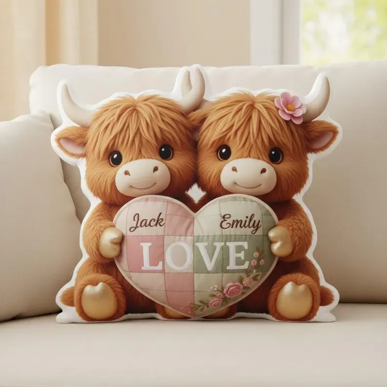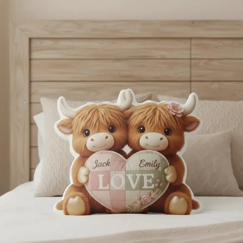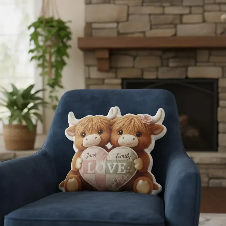 🎁 1 × Personalized Highland Cow Couple Pillow