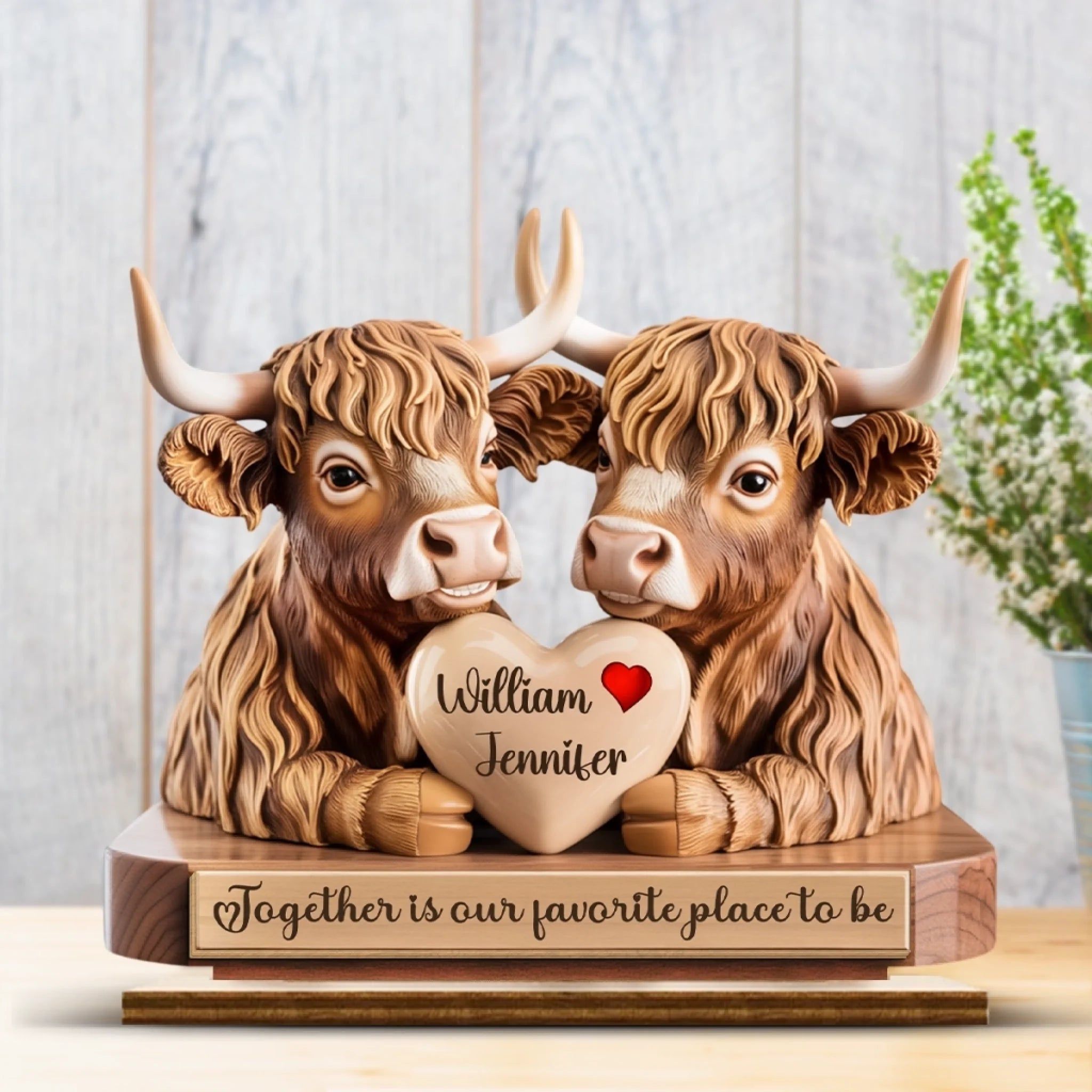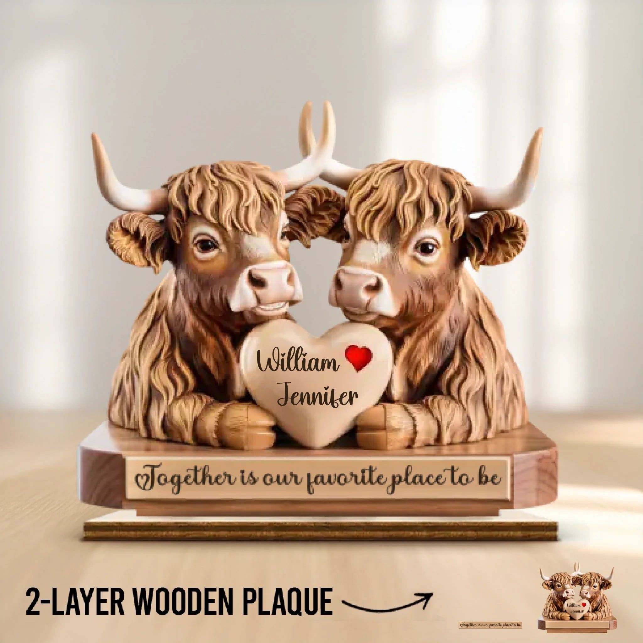 Together Is Our Favorite Place To Be - Couple Personalized Custom Shaped 2-Layered Wooden Plaque With Flat Stand - House Warming Gift For Husband Wife, Anniversary