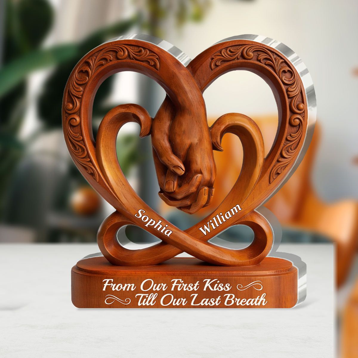 From Our First Kiss Till Our Last Breath Personalised Heart Acrylic Plaque – Valentine Day Gift