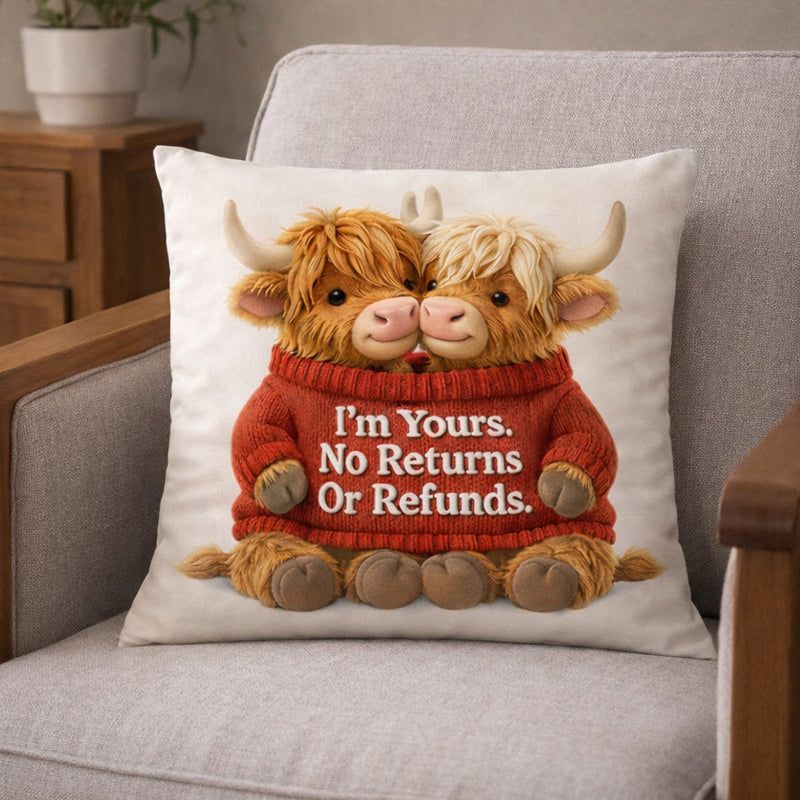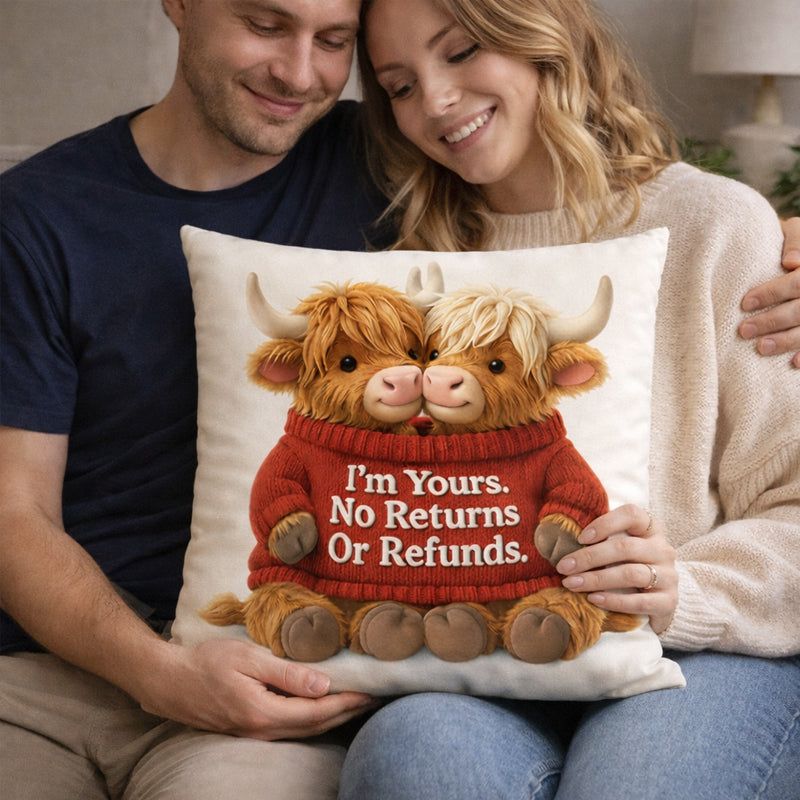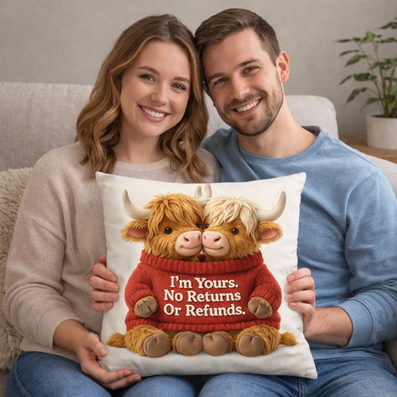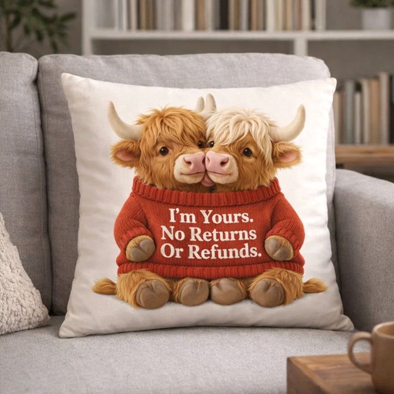 ⭐A Cosy Personalised Highland Cow Pillow That Celebrates Love, Laughter and Life Together❤️