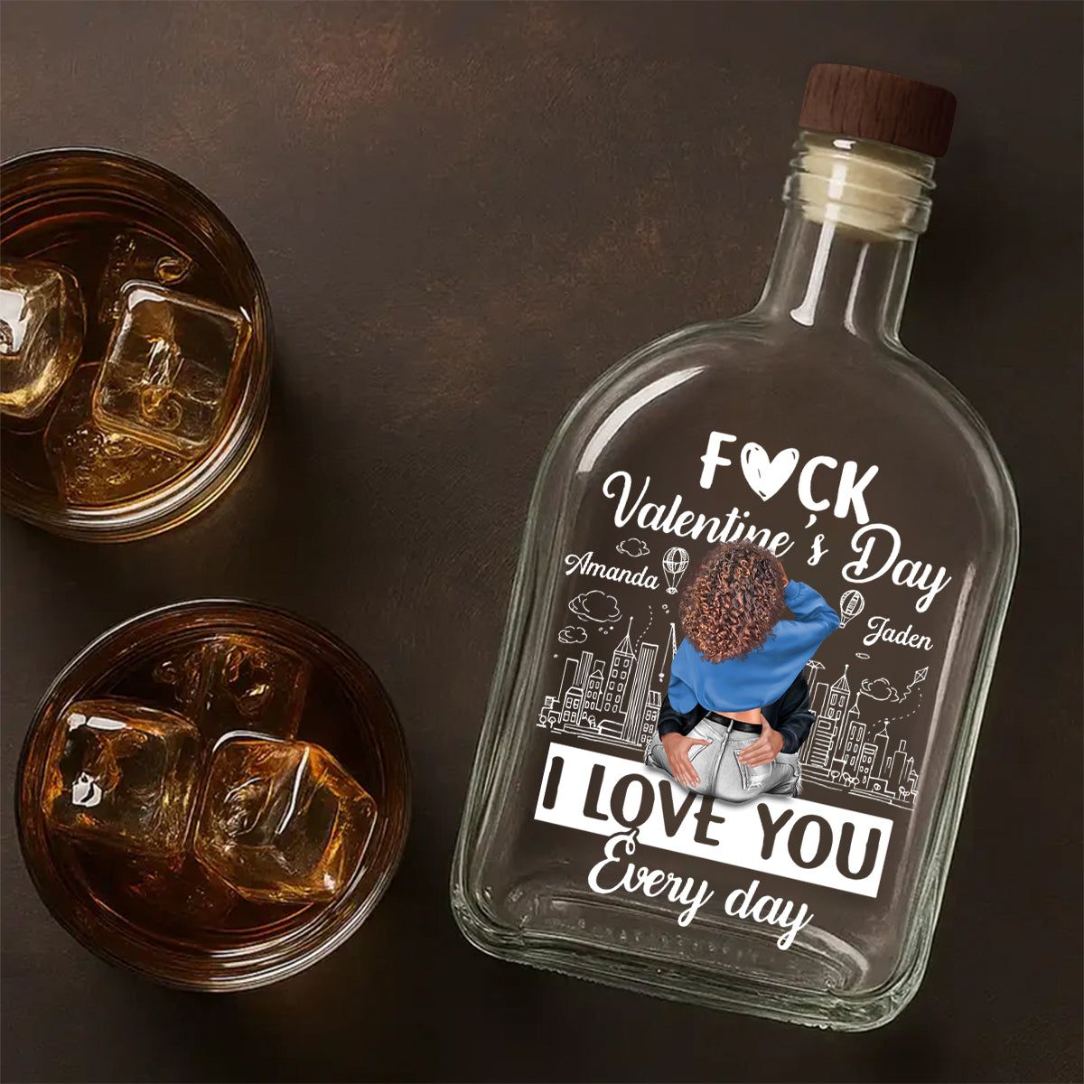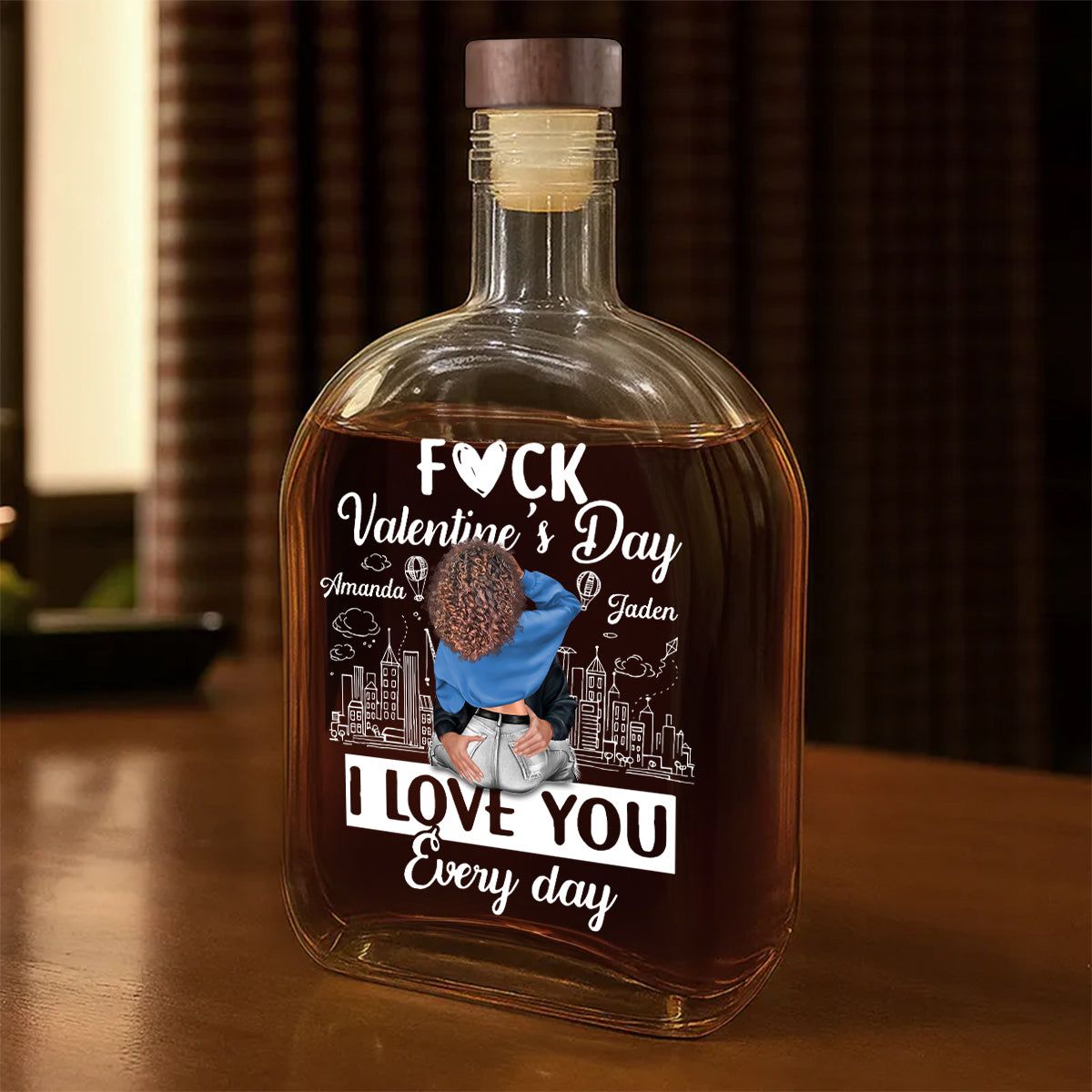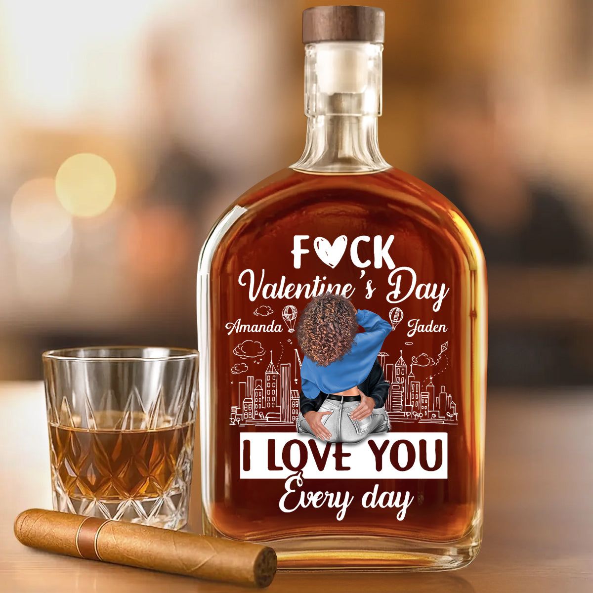 Custom Name Whisky Bottle – I Love You Every Day Romantic Gift for Couples