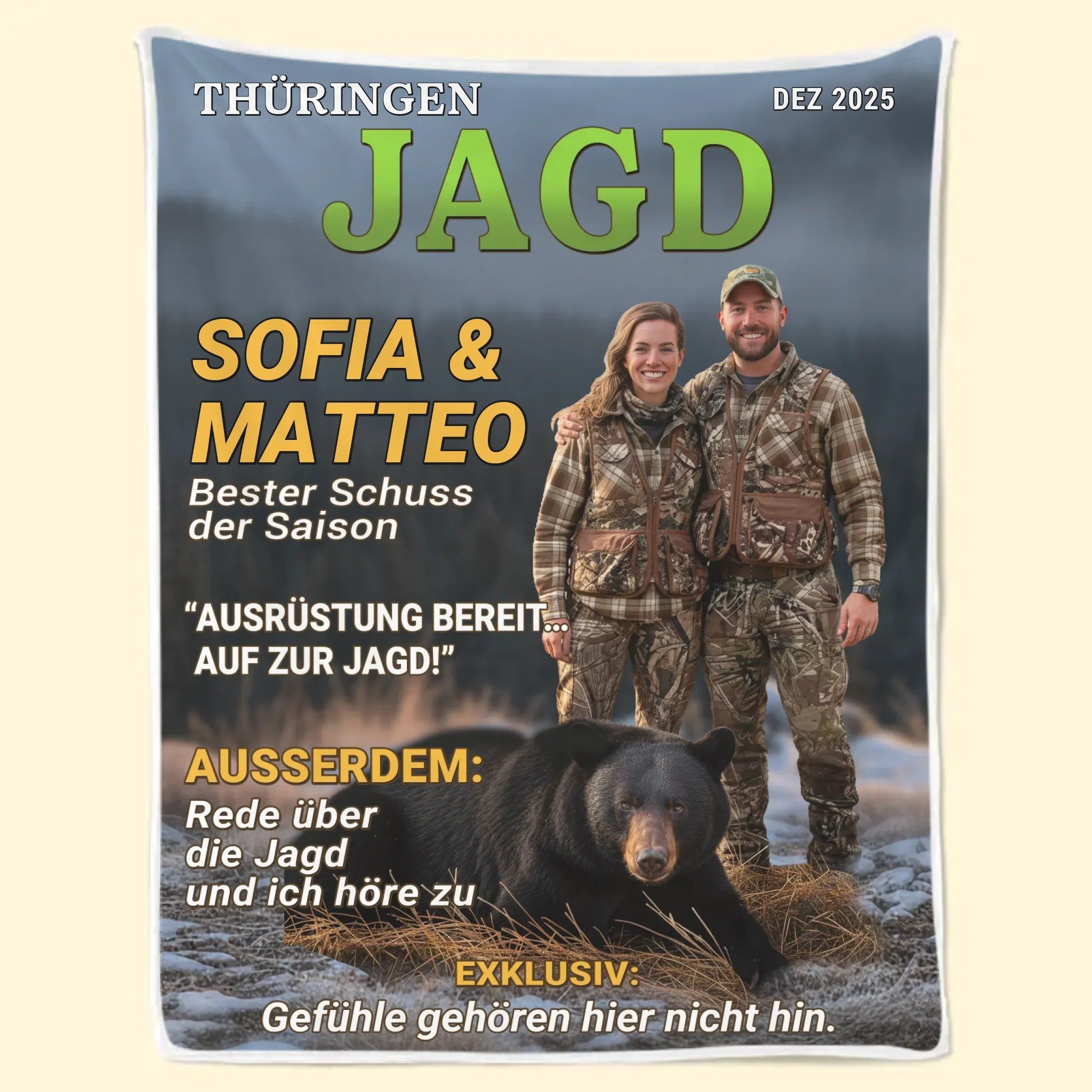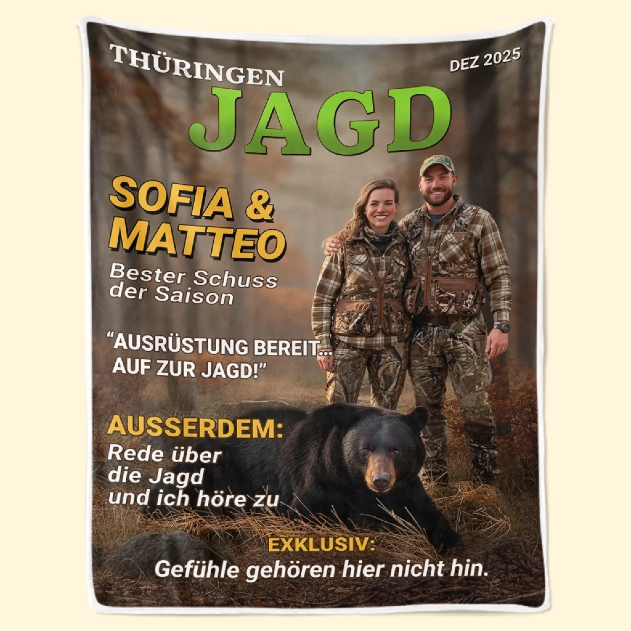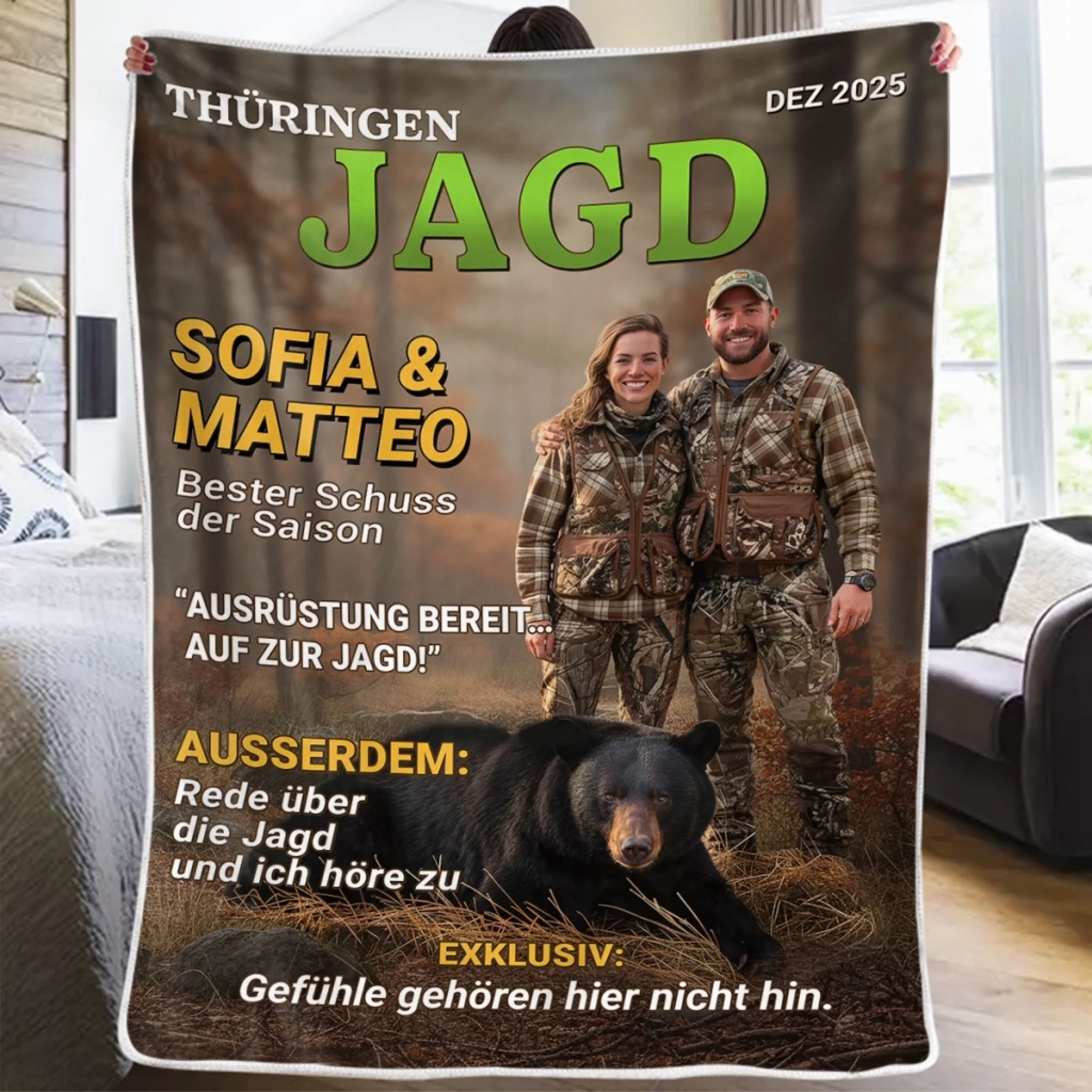 Personalisierte Decke mit Foto – Personalisierte Geburtstagsgeschenke für Jäger – Wild im Herzen