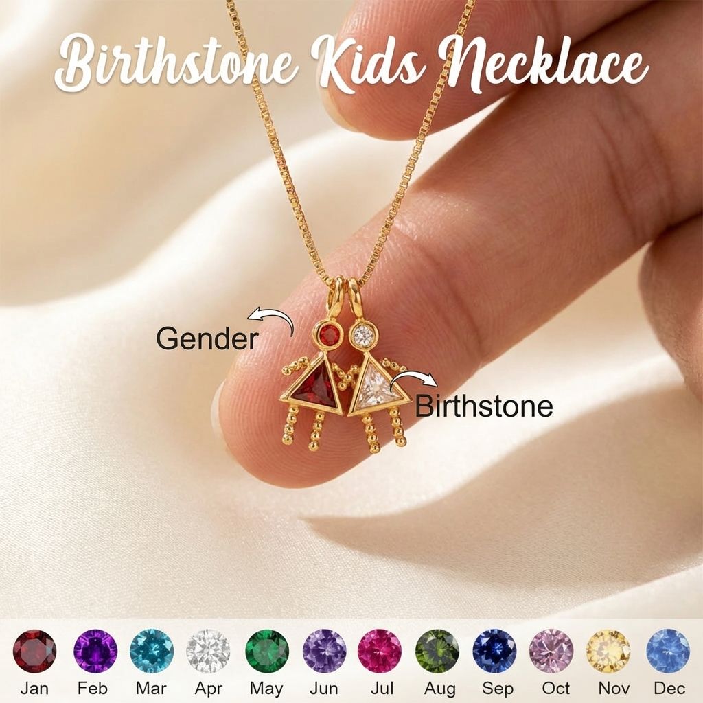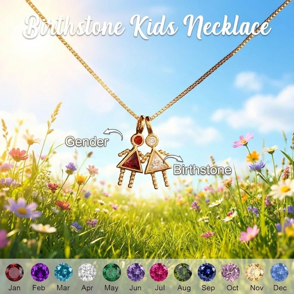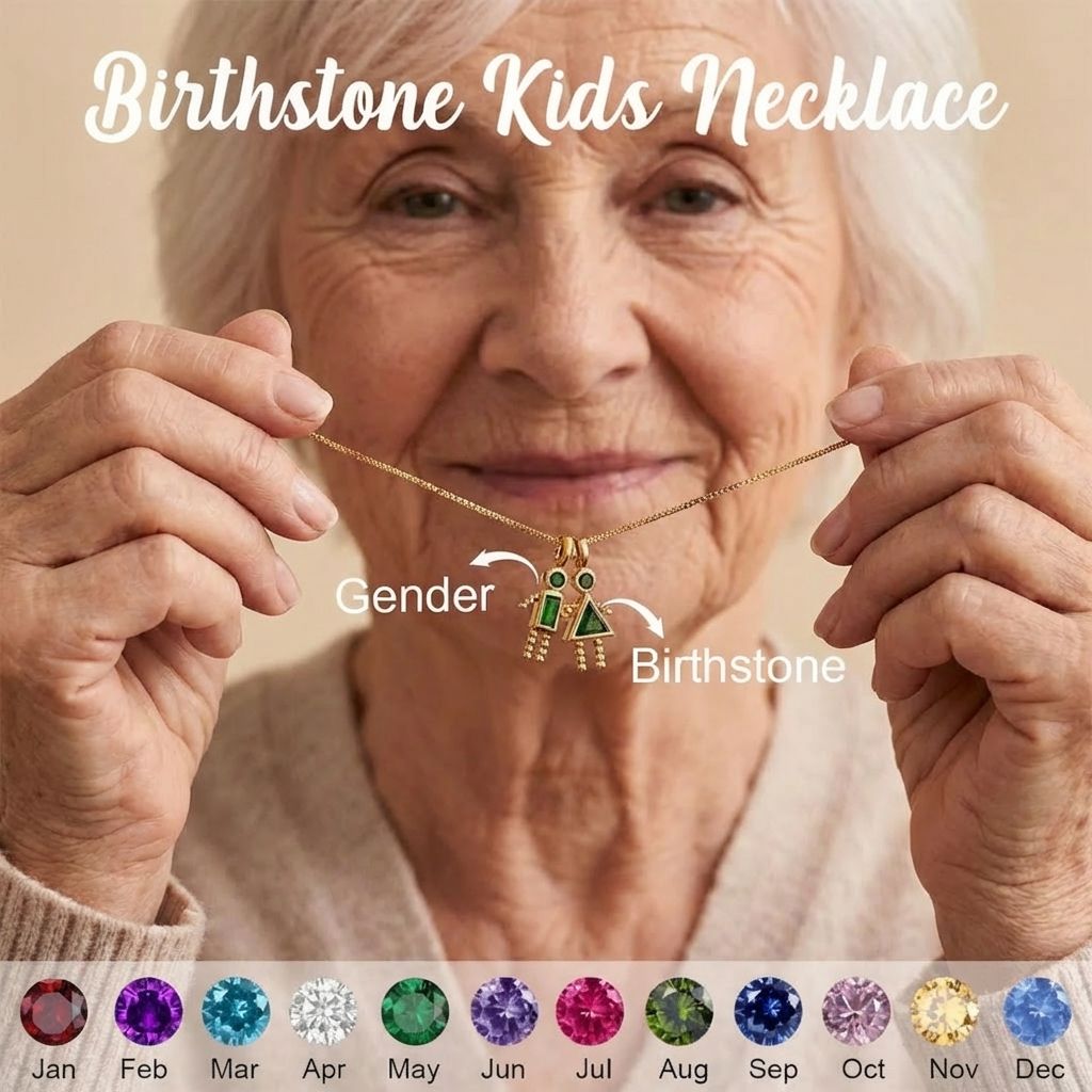 Personalized Birthstone Kids Charms Necklace - Gift for Mom Grandma