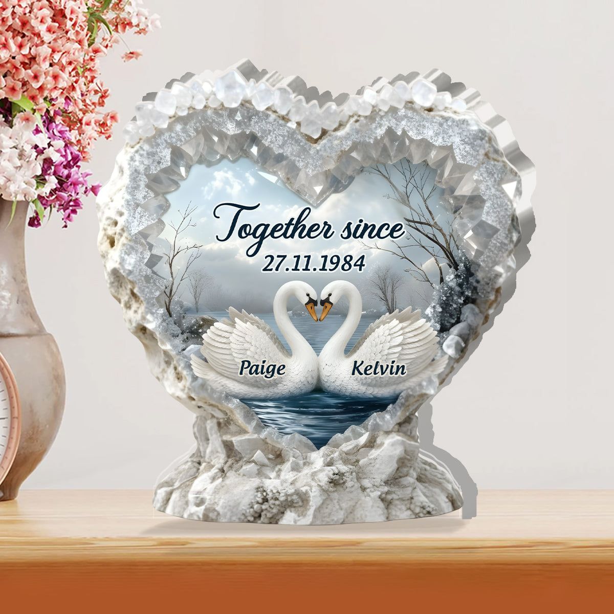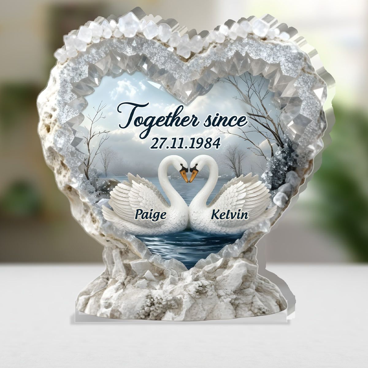 Swan By the Lake - Personalized Custom Shaped Squared Acrylic Plaque