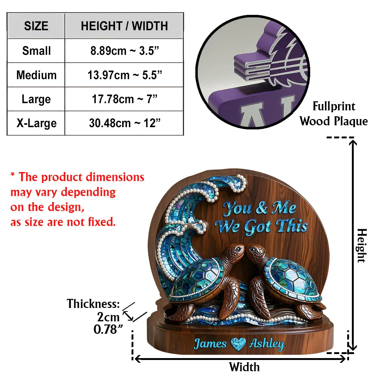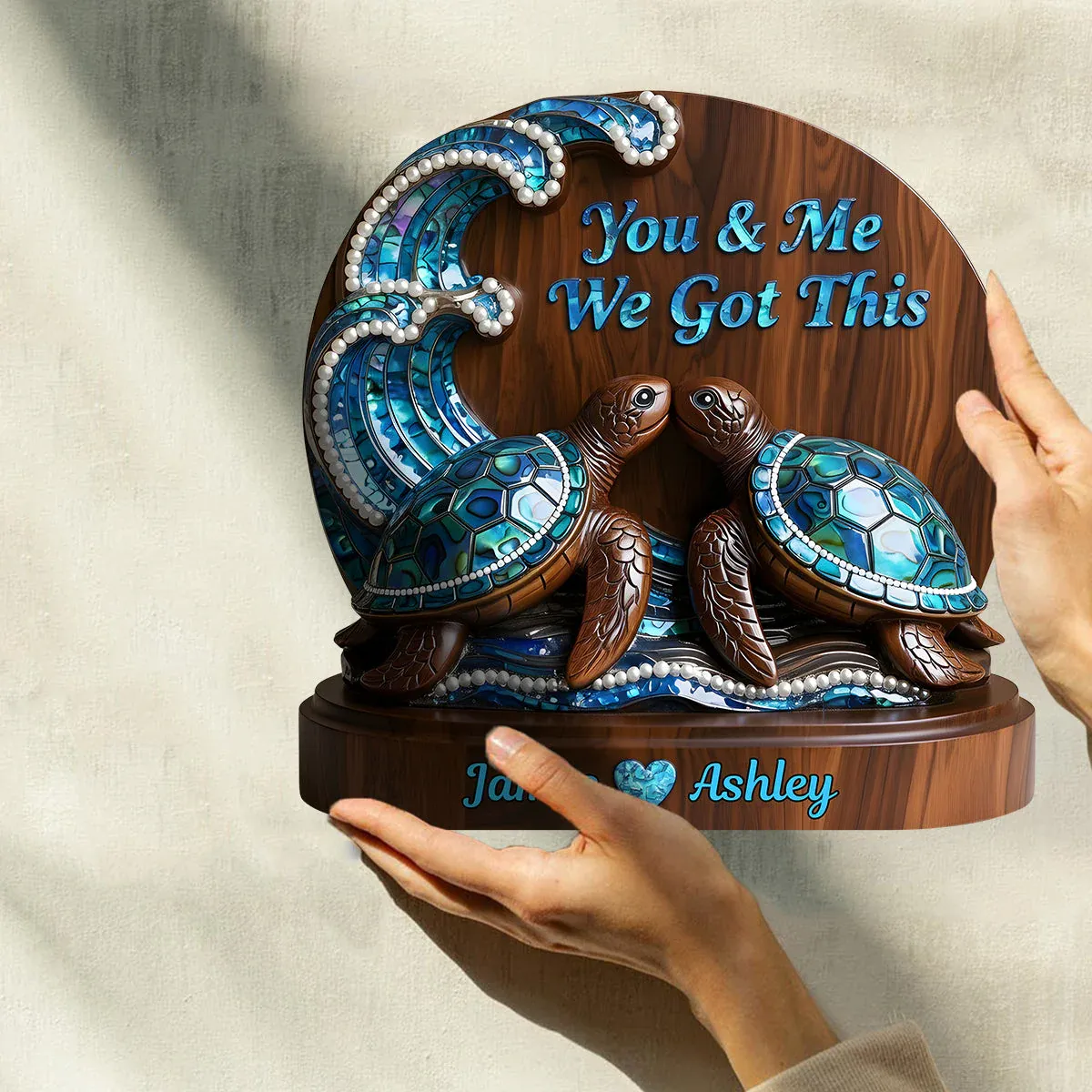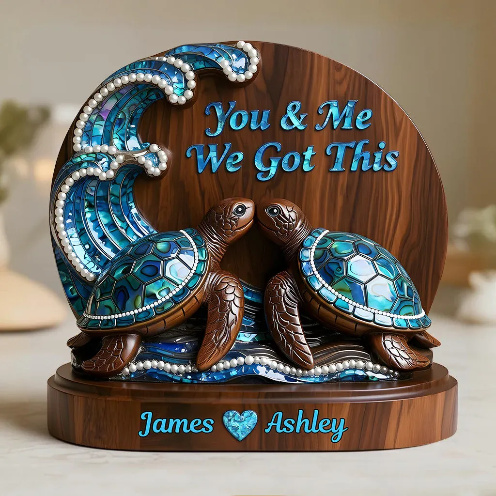 You & Me We Got This, Mother Of Pearl Styled Turtle Couple - Personalized Couple Custom Shaped Wood Plaque