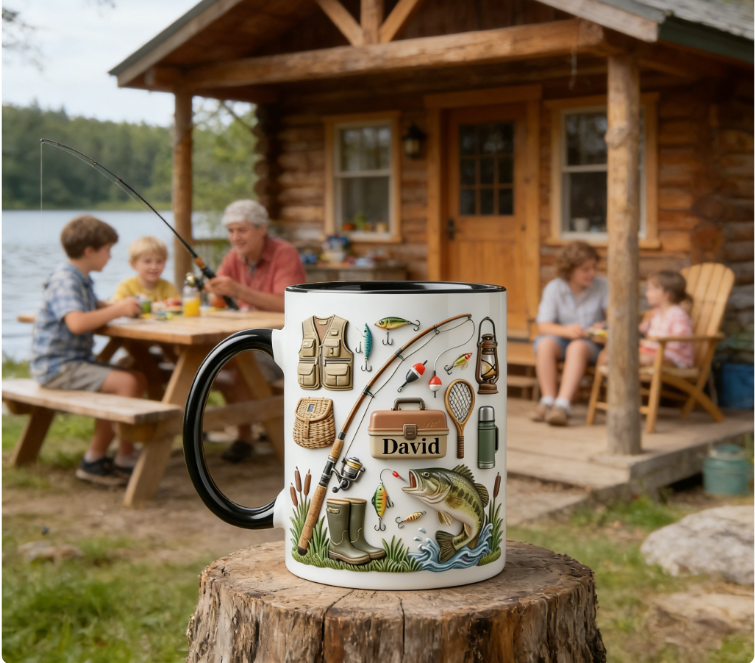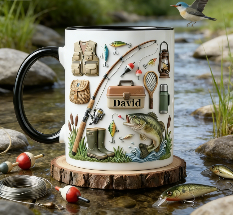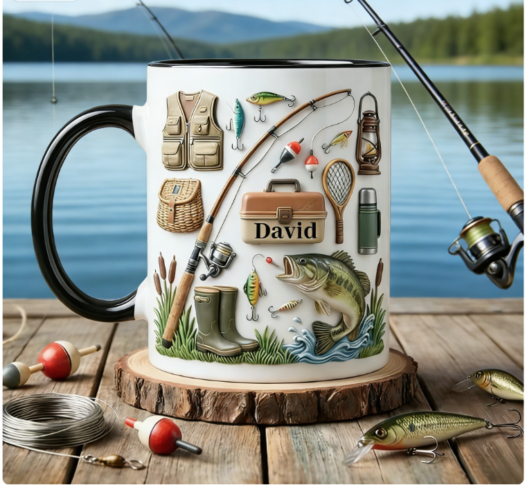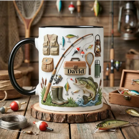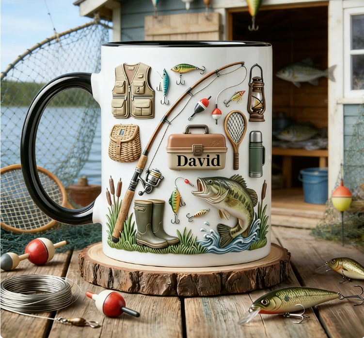 Personalised Hooked on Fishing Mug – Custom Name Fishing Cup, Gift for Fishing Lovers
